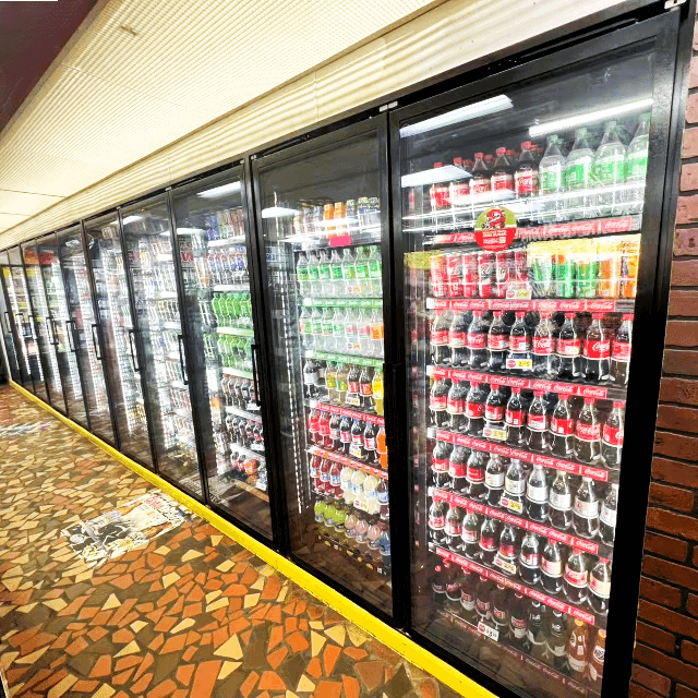 La puerta se abre a 90 grados y se detiene, lo que facilita a los clientes tomar la mercancía.
